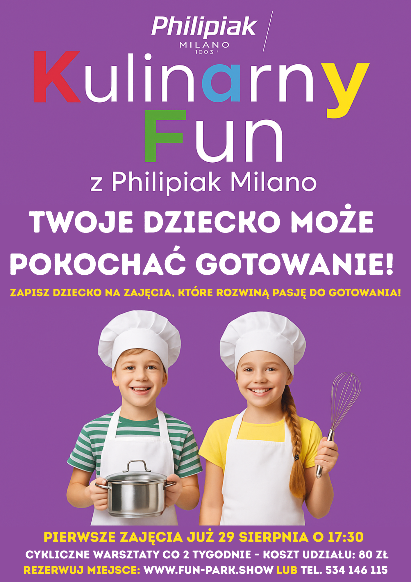Kulinarny Fun z Philipiak Milano to wyjątkowe warsztaty kulinarne, które odbywają się cyklicznie co 2 tygodnie w naszej profesjonalnej sali kuchennej w Fun Parku.