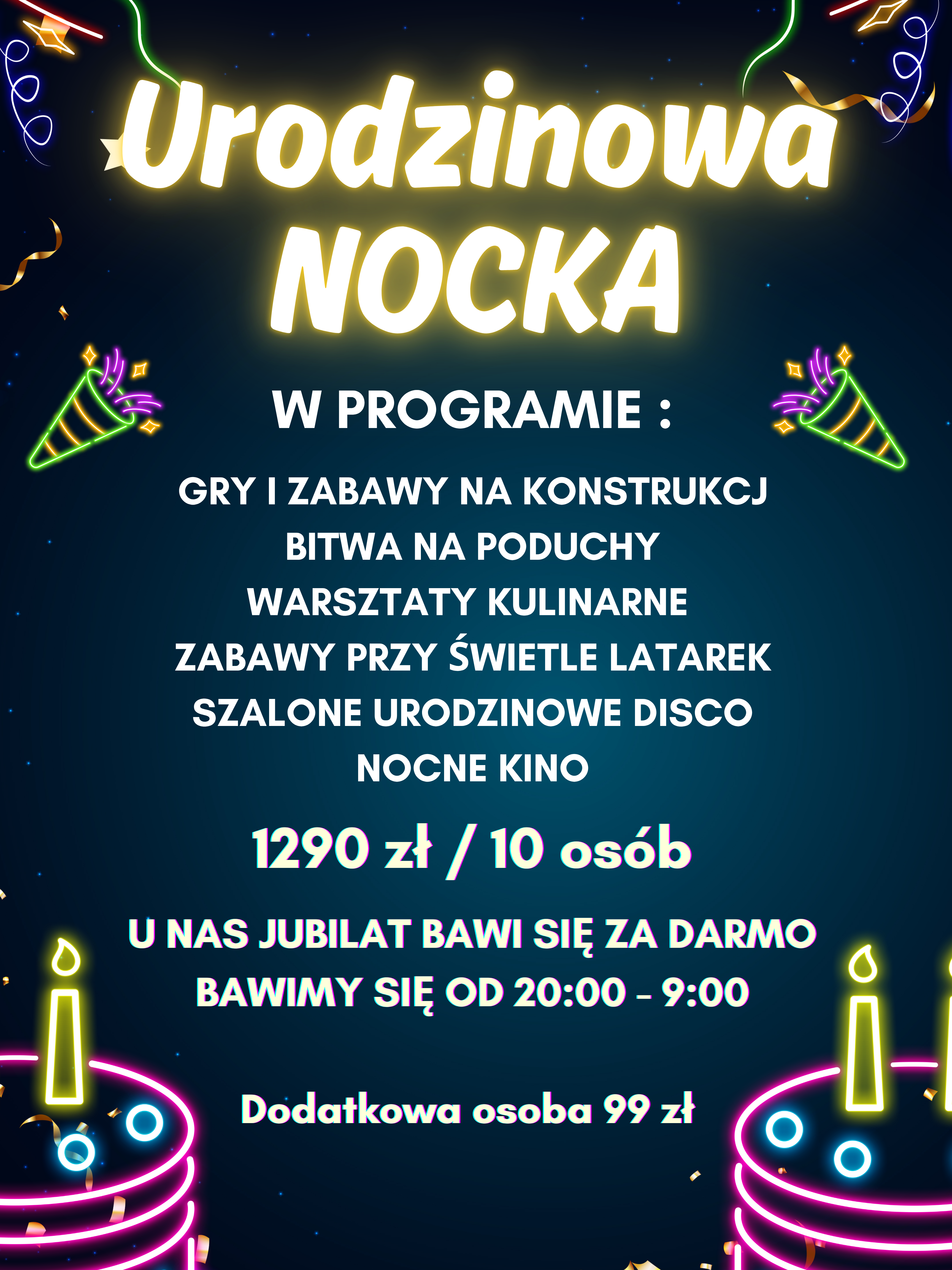 Przeżyj niezapomniane urodziny podczas naszej Urodzinowej Nocki! To ekscytująca noc pełna wrażeń, zabawy i niespodzianek dla dzieci, które marzą o wyjątkowym świętowaniu.